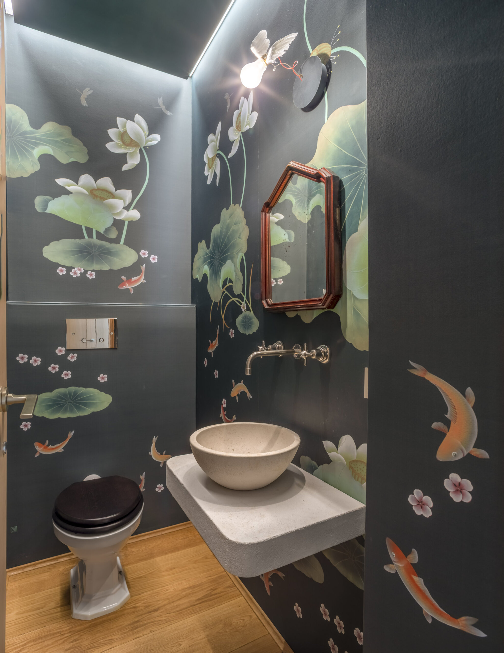‘Pond’ on Blu Petrolio handpainted pure silk